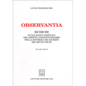 Observantia. Ricerche sulle radici «fattuali» del diritto consuetudinario nella dottrina di giuristi dei secoli XII-XV Prezzo 18,59 €