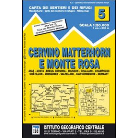 Carta n. 5 Cervino Matterhorn e Monte Rosa 1:50.000. Carta dei sentieri e dei rifugi