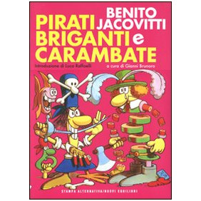 Fin dai suoi esordi, Benito Jacovitti ha goduto di grande popolarità presso i lettori del settimanale "Il Vittorioso", per i quali fra il 1940 e il 1956 creò decine di racconti, appartenenti ai generi più diversi. Incentrò storie sui briganti, da quelli esotici tipo i Quaranta ladroni della favola a quelli ottocenteschi italiani, con cappelloni, tabarro e archibugio; raccontò pirati e corsari, anche per fare il verso ai famosissimi eroi di Salgari; irruppe nel cappa e spada, sbeffeggiando il mondo dei "Tre moschettieri". Gli undici racconti riproposti in questo volume, mostrano come Jacovitti, in qualunque contesto si muovesse, rimaneva felicemente sé stesso, ricco di quel sadismo beffardo eppure candido che caratterizza tutta la sua personalità creativa, fino a parodiare le proprie creature (come nel caso del corsaro Cocco Bill, che disloca dalle praterie del West ai cavalloni dell'oceano). Introduzione di Luca Raffaelli.