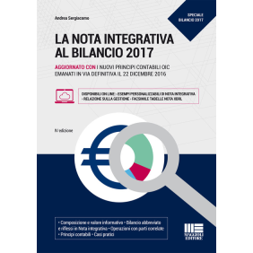 Aggiornata con i nuovi Principi Contabili revisionati dall'OIC ed emanati in via definitiva il 22 dicembre 2016, la quarta edizione di questo Manuale operativo esamina in modo approfondito tutti gli aspetti riguardanti la nota integrativa al bilancio d'esercizio e chiarisce in modo concreto al Professionista il processo di formazione della stessa, tenuto conto del disposto dell'art. 2427 del c.c. Arricchito da casi svolti, in particolare da casistiche delle società che devono redigere la nota integrativa in circostanze eccezionali della vita aziendale, come la liquidazione, la trattazione consente un approccio immediato e chiaro alle problematiche che si possono riscontrare, anche in situazioni complesse, come nella redazione del bilancio consolidato. Con esempi pratici, relazione sulla gestione e facsimile tabelle nota XBRL - scaricabili on line per la compilazione personalizzata e la stampa -, il testo evidenzia le applicazioni concrete e i riflessi sulla nota integrativa prodotti dal D.Lgs. n. 139/2015, che ha recepito la Direttiva UE 13/34 in materia di bilancio di esercizio e consolidato.