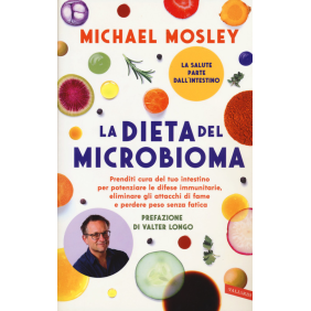 Il microbioma è l'insieme dei microrganismi che abitano nelle profondità del nostro intestino, il cui funzionamento influisce non solo sul metabolismo, ma anche sul sistema immunitario e sull'umore. Nelle nostre viscere si trovano milioni di neuroni (quanti ne ha il cervello di un gatto!), e miliardi di microrganismi, soprattutto batteri, che vanno appunto a costituire il microbioma, il miracoloso ecosistema del nostro organismo che concorre in maniera determinante alla salute e al benessere di corpo e psiche. In questo libro, Michael Mosley ci spiega come il cibo spazzatura e l'uso eccessivo di antibiotici abbiano ucciso molti dei batteri «buoni» che vivono dentro di noi, contribuendo all'enorme diffusione di allergie, intolleranze alimentari e obesità. Sulla base delle più recenti ricerche scientifiche, ci spiega come il corretto equilibrio della flora batterica intestinale sia decisivo; analizza diversi regimi alimentari valutando i loro effetti sulle condizioni dell'intestino; esamina il ruolo di prebiotici, probiotici e antibiotici, nonché gli ultimi trattamenti in materia di problemi intestinali. La dieta del microbioma è ricca di deliziose e salutari ricette, contiene un programma alimentare efficacissimo e molti suggerimenti: tutto ciò di cui abbiamo bisogno per trasformare il nostro intestino e cambiare il modo di mangiare per sempre.