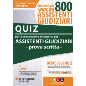Il Ministero della Giustizia, in data 22 novembre 2016, ha pubblicato il bando di concorso, per titoli ed esami, ad 800 posti per il profilo professionale di Assistente giudiziario (Cancelliere). Lo svolgimento del concorso prevede: - una prova preselettiva (eventuale, da svolgersi qualora le domande di partecipazione siano superiori a cinque volte il numero dei posti messi a concorso); - due prove scritte; - un colloquio orale. Gli argomenti delle prove scritte, che consisteranno in una serie di domande a risposta multipla, hanno ad oggetto le seguenti materie: - elementi di diritto processuale civile - elementi di diritto processuale penale Il volume "Quiz per la preparazione alle prove scritte per Assistente Giudiziario" è pensato per soddisfare le esigenze di quanti affrontano il suddetto concorso. Esso rappresenta uno strumento utile per la preparazione, raccogliendo una selezione di domande a risposta multipla, che prevedono quattro opzioni di soluzione, tra le quali viene indicata, alla fine di ogni sezione, la risposta corretta. Le domande hanno ad oggetto le materie oggetto del concorso. L'opera è arricchita da una selezione di quiz con soluzioni commentate, per una migliore verifica delle conoscenze acquisite con lo studio e per imparare a risolvere anche i quesiti più difficili. A completamento dell'opera, una estensione online con tutti i quiz contenuti nel volume, che offre la possibilità di esercitarsi in vista delle prove scritte mediante infinite simulazioni.