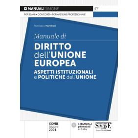 Il Manuale di Diritto dell'Unione europea, giunto alla XXVIII edizione, offre una trattazione completa ed aggiornata del sistema giuridico istituzionale dell'Unione e del diritto materiale dell'UE (mercato interno, spazio di libertà, sicurezza e giustizia, altre politiche interne e l'azione esterna dell'Unione). Il testo ripercorre i momenti cruciali che a partire da questo decennio hanno messo a dura prova l'Europa e i suoi cittadini. L'ultimo, determinato dalla pandemia di Covid-19, che ha compromesso gravemente il tessuto economico e sociale europeo, ha spinto l'Unione europea a definire varie iniziative e misure per far fronte alla crisi sanitaria. Tra le misure adottate, in particolare è stato istituito il nuovo strumento europeo per la ripresa e la resilienza Recovery Fund (regolamento UE 12 febbraio 2021, n. 2021/241): il principale dispositivo di intervento, che mette a disposizione degli Stati membri prestiti e sovvenzioni ed alla base dei Piani Nazionali di Ripresa e Resilienza (PNRR), presentati dagli Stati membri. Questa nuova edizione è, altresì, aggiornata alle varie novità normative, che hanno inciso in maniera evidente sui vari settori di competenza dell'Unione europea. Tra queste si segnalano: la firma degli accordi modificativi del Trattato che istituisce il Meccanismo europeo di stabilità (MES) da parte dei rappresentanti degli Stati membri, il 27 gennaio 2021; il regolamento UE del 17 dicembre 2020, n. 2020/2093, che stabilisce il nuovo quadro finanziario pluriennale per il periodo 2021-2027; i nuovi programmi quadro adottati in materia di ricerca e innovazione, istruzione e formazione e nel settore ambientale per allinearli con il quadro finanziario pluriennale 2021-2027. Il Manuale, per come è strutturato, costituisce, dunque un valido strumento di studio per una preparazione esaustiva in vista di esami e concorsi nonché per l'aggiornamento professionale.