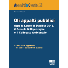 Questo volume, corredato dal testo aggiornato e coordinato del Codice dei contratti pubblici, offre la prima analisi e il commento delle numerose ed importanti novità introdotte dalla Legge di stabilità 2016, n. 208/2015, dal Decreto Milleproroghe, D.L. n. 210/2015, e dal collegato ambientale alla legge di stabilità sulla green economy, L. n. 221/2015. Il quadro normativo in materia di acquisti di beni e servizi, come risulta dai recenti interventi di spending review e leggi di stabilità, si presenta particolarmente complesso, articolato e stratificato: nuovi vincoli per le Amministrazioni aggiudicatrici, limitate semplificazioni per gli acquisti fino 1.000 euro, in deroga al MepA, e per i Comuni sotto i 10.000 abitanti, nuovo obbligo di programmazione biennale, modifiche per le forniture ad alta economia di scala (gas, carburanti, telefonia, ecc), novità per le società controllate dagli Enti Locali, tenute ora a rispettare i parametri prezzo-qualità delle convenzioni quadro. Norme speciali sono poi previste per gli acquisti informatici e sanitari, entrambi soggetti a nuovi obblighi di centralizzazione e di autorizzazione per le procedure autonome di acquisto. Di particolare rilievo anche le modifiche al Codice appalti in materia di appalti verdi e rispetto dei criteri minimi ambientali.