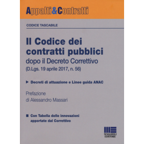 Il codice dei contratti pubblici tascabile si conferma strumento di grande utilità per gli operatori che desiderano avere sempre a portata di mano il testo del D.Lgs. 50/2016, aggiornato con le oltre 300 modifiche non solo formali, ma di ampia portata e sostanza, introdotte dal Decreto Correttivo, finalizzate a migliorare l'omogeneità, la chiarezza e l'adeguatezza del suddetto decreto.