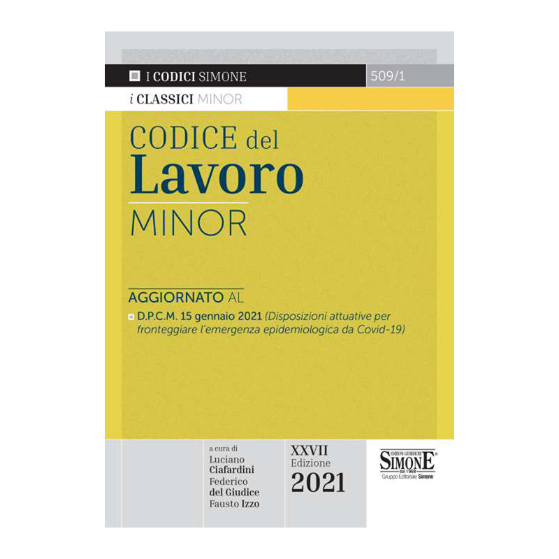 Questa nuova edizione del Codice del Lavoro minor vede la luce in un periodo caratterizzato dalla recrudescenza della malattia respiratoria denominata COVID-19, cui si affianca, però, la speranza concreta di superarla attraverso la somministrazione di massa di vaccini prodotti grazie alla sinergia dei centri di ricerca di tutto il mondo. Tuttavia, fino alla cessazione dello stato di emergenza, di cui non si è ancora in grado di fissare una deadline, tutti i sistemi strategici del paese, incluso quello produttivo e lavorativo, saranno fortemente condizionati dalle prescrizioni che impongono ai cittadini di tenere comportamenti responsabili, a tutela della salute pubblica. Si tratta di quelle misure di cosiddetto «contenimento», caratterizzate da divieti e limitazioni alle libertà di circolazione e movimento, che si riflettono inevitabilmente sulla stessa attività lavorativa, pubblica e privata, in qualsiasi forma prestata (dall'esercizio dell'industria, all'artigianato, al commercio, alle arti, fino alle professioni). Era inevitabile che lo stesso diritto del lavoro, così come lo abbiamo finora conosciuto, ne risultasse profondamente trasformato, almeno (si spera) temporaneamente. Lo strumento utilizzato per affrontare l'emergenza è stato quello del decreto-legge. Ne è seguito un profluvio normativo, caratterizzato anche da repentini cambiamenti di rotta, tali da rendere necessario l'inserimento, nella sistematica del Codice del Lavoro, di una parte autonoma e di nuova introduzione, dedicata al cosiddetto «lavoro nell'emergenza», allo scopo di offrire agli operatori pratici, prima ancora che agli studiosi del diritto, il catalogo delle disposizioni che più direttamente hanno inciso sulla disciplina del rapporto di lavoro, pubblico e privato. In questo panorama, pur in continua evoluzione, rilievo centrale assumono, tra i tanti: il D.L. 17 marzo 2020, n. 18, conv. in L. 24 aprile 2020, n. 27 (Misure di potenziamento del Servizio sanitario nazionale e di sostegno economico per famiglie, lavoratori e imprese); il D.L. 19 maggio 2020, n. 34, conv. in L. 17 luglio 2020, n. 77 (Misure urgenti in materia di salute, sostegno al lavoro e all'economia, nonché di politiche sociali connesse all'emergenza); il D.L. 14 agosto 2020, n. 104, conv. in L. 13 ottobre 2020, n. 126 (Misure urgenti per il sostegno e il rilancio dell'economia); il D.L. 28 ottobre 2020, n. 137, conv. in L. 18 dicembre 2020, n. 176 (Ulteriori misure urgenti in materia di tutela della salute, sostegno ai lavoratori e alle imprese, giustizia e sicurezza, connesse all'emergenza epidemiologica da COVID-19) (che ha riunito le misure adottate con diversi decreti-legge precedenti tesi a concedere misure di sostegno economico - i c.d. «ristori» - a categorie produttive e lavorative particolarmente colpite dalla crisi) nonché il D.L. 5 gennaio 2021, n. 1 e il D.L. 14 gennaio 2021, n. 2 (Ulteriori disposizioni per emergenza COVID-19). L'attuazione di tali previsioni, connotate dalla straordinarietà e dall'urgenza di provvedere, è stata demandata a decreti del Presidente del Consiglio dei ministri, che si sono succeduti senza soluzione di continuità (l'ultimo prima dell'invio alla stampa del presente codice è il D.P.C.M. 15 gennaio 2021). La modalità di svolgimento della prestazione lavorativa privilegiata dal legislatore dell'emergenza è quella del lavoro «agile», allo scopo di limitare la presenza sui luoghi di lavoro. Istituti classici del sostegno alle imprese e ai lavoratori, a partire dalla cassa integrazione guadagni e altri ammortizzatori sociali, per finire al riconoscimento di permessi retribuiti e di congedi, sono stati ampliati e rafforzati, con l'eliminazione, per tutta la durata del periodo emergenziale, della gran parte dei requisiti (limitativi) previsti per l'accesso e il godimento delle relative prestazioni.