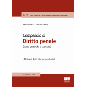 Una trattazione dei fondamenti e degli istituti caratterizzanti il diritto penale, che affronta in modo semplice e sistematico le tematiche rilevanti per lo studio della materia. L'aggiornamento normativo tiene conto, in particolare, delle novità introdotte con: i DD.Lgss. 7 e 8 del 15 gennaio del 2016 (rispettivamente Disposizioni in materia di abrogazione di reati e introduzione di illeciti con sanzioni pecuniarie civili e Disposizioni in materia di depenalizzazione), coi quali sono state depenalizzate diverse fattispecie di reato, abrogandone altre e sostituendole con illeciti civili. Alcuni articoli del codice penale sono stati abrogati, altri modificati. Sono stati previsti infine i nuovi illeciti sottoposti a sanzioni pecuniarie civili, relativi a tutti quei fatti per i quali, se dolosi, oltre all'obbligo della restituzione e risarcimento è prevista anche una sanzione pecuniaria civile; la L. n. 41 del 23 marzo 2016 (Introduzione del reato di omicidio stradale e del reato di lesioni personali stradali), che ha novellato in materia di arresto obbligatorio ed estensione dei casi di arresto facoltativo, nonché di esami e di prelievi coattivi e procedibilità d'ufficio per i casi di lesioni gravi e gravissime. Per una panoramica completa ed esaustiva di tutti gli argomenti afferenti al diritto penale, si è, inoltre, operata un'accurata selezione delle più significative pronunce giurisprudenziali recenti.
