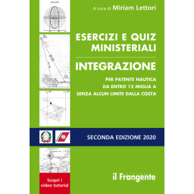 Questo manuale raccoglie i 54 esercizi di carteggio e i 308 quiz di integrazione in vigore dal 1° marzo 2016 per il conseguimento della patente nautica da entro 12 miglia a senza alcun limite dalla costa e ad oggi adottati dalla quasi totalità delle sedi d'esame dell'Autorità Marittima, Capitanerie di Porto e Uffici Circondariali Marittimi. Gli esercizi, che prevedono l'utilizzo della carta didattica 5/D dell'Istituto Idrografico della Marina, sono così strutturati: descrizione, esecuzione, soluzione e rappresentazione grafica sulla carta d'esame al fine di agevolare l'allievo nella verifica dell'esercizio svolto. I 308 quiz sono stati organizzati allo scopo di seguire la stessa sequenza di argomenti adottata nel manuale Patente nautica per l'esame di integrazione. Nel manuale sono presenti dei QR Code per visionare utilissimi tutorial propedeutici al carteggio.