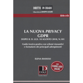 Il volume analizza, con completezza argomentativa e immediata operatività, le numerose innovazioni introdotte dal GDPR e dal Decreto Legislativo n. 101 del 10 agosto 2018, in tema di adempimenti per la tutela dei dati personali. Si approfondisce il quadro normativo introdotto dal Reg. 2016/679/EU, compresi i riferimenti, oltre che all'articolato, anche ai "Considerando" europei, collegati alle innovazioni introdotte nell'ordinamento giuridico italiano dal decreto di adeguamento dell'agosto 2018. L'opera ricostruisce il quadro delle molteplici innovazioni di questa ampia riforma del sistema privacy, suddividendo la materia secondo uno schema logico che, partendo dagli oggetti della disciplina, approda ai soggetti coinvolti nel trattamento dei dati, analizzandone gli obblighi, da un lato, e i diritti, dall'altro, evidenziando il delicato compito del Garante per la tutela dei dati personali, e le metodologie di irrogazione delle sanzioni. Offre al titolare del trattamento un utile strumento pratico grazie agli schemi finali, ma soprattutto all'elenco degli adempimenti e alle formule che possono essere consultate anche online, in versione modificabile, grazie alla password contenuta nel volume.