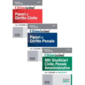 Una raccolta di pareri e atti basati sulle pronunce più significative degli ultimi mesi va a completare l'offerta della «Simone» ai praticanti avvocati e fornire un ulteriore supporto di studio e consultazione per le prove scritte dell'esame di avvocato. Il lavoro, giunto alla XVI edizione fa il punto sulle tematiche più controverse che come tali potrebbero essere oggetto delle prove scritte. I pareri di civile e di penale, nonché gli atti giudiziari in materia civile, penale e amministrativa si offrono, quindi, quale pratico supporto nella preparazione alla redazione della prova scritta, permettendo di affrontare il momento dell'esame con maggiore serenità e consapevolezza. Peculiarità del lavoro è, ancora una volta, costituita dal collegamento che ogni singolo elaborato fa con i Codici Commentati Simone permettendo di ampliare notevolmente la possibilità di ritrovare la casistica più aderente al quesito proposto.