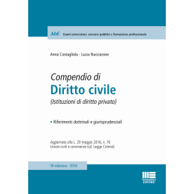 Una trattazione dei fondamenti e degli istituti caratterizzanti il diritto civile, che affronta in modo semplice e sistematico le tematiche rilevanti per lo studio della materia. Il volume è aggiornato ai più recenti provvedimenti normativi, tra i quali si segnala la L. 20 maggio 2016, n. 76 (G.U. 21 maggio 2016, n. 118), cd. Legge Cirinnà, recante regolamentazione delle unioni civili tra persone dello stesso sesso e disciplina delle convivenze. Circa le unioni civili, il provvedimento riconosce a due persone maggiorenni dello stesso sesso il diritto di costituire un'unione mediante dichiarazione di fronte all'ufficiale di stato civile e alla presenza di due testimoni. Relativamente alla disciplina delle convivenze di fatto, la legge Cirinnà riconosce ai conviventi alcuni diritti già previsti per i coniugi e i familiari. Per una panoramica completa ed esaustiva di tutti gli argomenti afferenti al diritto civile si è operata inoltre un'accurata selezione delle più significative e recenti pronunce giurisprudenziali. Si segnala, in particolare, la sentenza 23 marzo 2016, n. 5762, con cui la Corte di Cassazione ha riconosciuto la risarcibilità dei cosiddetti vizi incompleti, ossia di quelle situazioni che, pur non essendo contemplate dal legislatore come causa di invalidità del contratto, creano un pregiudizio ad uno dei contraenti, al punto che, se questi ne fosse stato a conoscenza, non avrebbe concluso l'accordo.