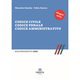La raccolta riporta tutti gli aggiornamenti normativi al Codice civile, Codice Penale, Codice amministrativo di Maurizio Santise e Fabio Zunica da giugno 2024 a giugno 2025 fino alla sentenza della Corte costituzionale n. 68 del 22 maggio 2025 che ha dichiarato incostituzionale l'art. 8 della legge 40 del 2004, e alla Legge 09/06/2025, n. 80 di conversione in legge del decreto-legge 11 aprile 2025, n. 48, recante disposizioni urgenti in materia di sicurezza pubblica, di tutela del personale in servizio, nonché di vittime dell'usura e di ordinamento penitenziario pubblicata nella Gazz. Uff. 9 giugno 2025, n. 131.