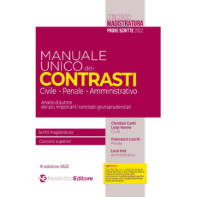 L'Opera prosegue e aggiorna il lavoro sui contrasti giurisprudenziali nelle tre materie del concorso in magistratura e dei principali concorsi pubblici, raccogliendo in un unico volume le più importanti pronunce della Corte di Cassazione, del Consiglio di Stato e delle Corti sovranazionali, intervenute nell'ultimo periodo. Attraverso l'analisi della dialettica giurisprudenziale sui principali contrasti, il lettore potrà non solo pervenire ad una esauriente padronanza delle questioni giuridiche più rilevanti, ma soprattutto acquisire un metodo argomentativo, fondato sulla dialettica tra tesi opposte e sul momento di sintesi rappresentato dalla pronuncia risolutiva, utile per la risoluzione di qualsiasi problema interpretativo. Per ogni contrasto, attraverso un format ordinato ed uniforme, l'Opera ricapitola la questione rilevante con i suoi riferimenti normativi, i termini del dibattito, illustrando le opposte teorie e le relative argomentazioni, la risoluzione del contrasto, con una completa analisi della sentenza intervenuta all'esito del dibattito, gli sviluppi applicativi, evidenziando in particolare gli elementi di innovazione introdotti e il loro impatto sistematico nell'ordinamento. Tra le questioni affrontate e risolte si segnalano per il diritto civile, quella relativa alla nullità delle intese restrittive della concorrenza e dei relativi atti applicativi (Cass. civ., ord. 30 aprile 2021, n. 11486), per il diritto amministrativo, quella relativa alle misure di self cleaning nelle gare alla luce della giurisprudenza europea, nonché quella relativa alla portata dell'art. 34, comma 3, c.p.a., che il Consiglio di stato, Sez. IV, ord. 9 febbraio 2022, n. 945, ha rimesso alla soluzione dell'Adunanza Plenaria, per il diritto penale, il tema delle confische, con particolare riferimento alla qualificazione della confisca di somme di denaro nell'ipotesi in cui la parte interessata fornisca la prova della derivazione del denaro da un titolo lecito (Cass. pen., Sez. un., sent. 27 maggio 2021 (dep. 18 novembre 2021), n. 42415).