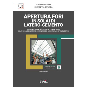 Manuale teorico-pratico sulla progettazione strutturale di costruzioni in cemento armato - secondo la nuova normativa nazionale (D.M. 17 gennaio 2018, recante «Aggiornamento delle "Norme tecniche per le costruzioni"») - che approfondisce il tema dei fori sui solai in latero-cemento. Considerato che il D.M. 17 gennaio 2018 non dedica molto spazio alla progettazione dei solai, si farà riferimento alla Circolare 21 gennaio 2019, n. 7 C.S.LL.PP., ed al D.M. 9 gennaio 1996. Il manuale tratta i seguenti argomenti: cemento armato; inquadramento normativo; metodi di calcolo; azioni e carichi sulle costruzioni; azione della neve; azione del vento; analisi strutturale; verifiche agli stati limite; solai in cemento armato. Inoltre approfondisce due tipi di calcolo: calcolo di un foro nel solaio mediante la realizzazione di quattro travi a spessore ai lati che non modifica lo schema strutturale dell'edificio; calcolo di un foro realizzato con travi parallele al solaio principale che modificano lo schema strutturale dell'edificio. Nel primo caso, le travi del bordo del foro andranno dimensionate in funzione delle azioni massime calcolate sui bordi del foro ottenuti mediante la risoluzione degli schemi statici del solaio, per fare ciò si ipotizza che il peso della zona di solaio che viene eliminata dal foro equivale al peso delle travi del bordo del foro e che la rigidezza della parte di solaio che include il foro sia rimasta invariata. Nel secondo caso, il solaio intercluso tra le due travi aggiuntive viene calcolato come trave semplicemente appoggiata alle estremità per il calcolo delle armature inferiori, mentre vengono considerate incastrate agli estremi per il calcolo delle armature superiori.