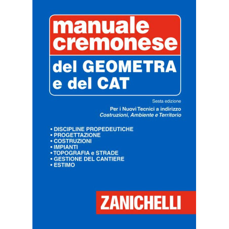 La sesta edizione del manuale Cremonese del Geometra e del CAT è stata rivista e aggiornata per rispondere alle esigenze didattiche dei Nuovi Istituti Tecnici, in particolare per l'indirizzo Costruzioni, Ambiente e Territorio. Un unico volume raccoglie le discipline propedeutiche e la trattazione specialistica. Si è ritenuto utile riproporre nelle linee essenziali le discipline propedeutiche, che affrontano argomenti che dovrebbero essere già acquisiti, per consentire sempre allo studente una loro agevole consultazione. Nella sezione specialistica si è privilegiata invece la componente disciplinare caratterizzante al fine di rendere questo strumento davvero utile per l'Esame di Stato, grazie anche al ricchissimo corredo di tavole, di disegni e riferimenti normativi. L'opera è perciò divisa in macrosezioni secondo le linee guida ministeriali, seguendo la progressione, scaturita dalla riforma, delle nuove materie scolastiche: si trovano quindi Progettazione, Costruzioni, Impianti, Topografia, Gestione del cantiere e strade, Estimo e Norme giuridiche. Fra gli aggiornamenti più importanti si segnalano l'inserimento della nuova normativa sul condominio, l'approfondimento sull'estimo civile e quello ambientale, nuovi capitoli tecnici come le costruzioni in legno e le prestazioni dell'involucro edilizio e una profonda revisione della parte di topografia.