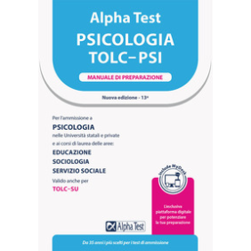 La nuova edizione 2023/2024 di questo manuale è stata rivista e aggiornata sulla base degli ultimi test ufficiali. Il volume dedica ampio spazio a tutte le materie presenti nei test di ammissione ai corsi delle aree Psicologia, Educazione e Sociologia di tutte le Università (TOLC-PSI, TOLC-SU e altri test di ateneo). La parte di teoria - essenziale e completa - è accompagnata da centinaia di esercizi risolti e commentati tratti dalle prove ufficiali degli ultimi anni. Il volume è arricchito da preziose informazioni sui nuovi test e sui criteri di selezione e offre utili suggerimenti pratici su come affrontare con successo la prova (uso ragionato del tempo a disposizione, strategie risolutive, gestione delle domande più difficili ecc.). Include l'accesso al sistema di e-learning MyDesk: Informazioni aggiornate sui test, Video-lezioni dei docenti Alpha Test, Tutorial su test e preparazione all'esame, Contenuti digitali aggiuntivi (approfondimenti, schemi riassuntivi, formulari ecc.).