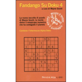 Dopo il grande successo dei precedenti volumi, arriva il Fandango Su Doku 4. Con un nuovo sistema che in relazione al tempo impiegato permette di calcolare il vostro punteggio, verificare i progressi nel risolvere i puzzle e cimentarvi in appassionanti sfide con parenti e amici. In questo volume si trovano 100 puzzle originali, presentati in ordine di difficoltà (facile, medio, difficile, diabolico). Le regole di compilazione sono semplici: inserite i numeri mancanti, da 1 a 9, in qualunque ordine, in ogni riga (orizzontale), in ogni colonna (verticale) e in ogni riquadro (di nove caselle). La condizione è che non compaia due volte lo stesso numero in una riga, una colonna o un riquadro.