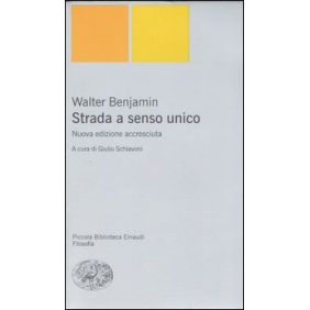 Nato dal desiderio di raccogliere in un "libriccino per gli amici" "aforismi, scherzi e sogni" e pubblicato nel 1928, "Strada a senso unico" si presenta come un montaggio di microtesti. Gli aforismi sono organizzati secondo una struttura particolare, in quanto ogni capitolo è presentato con il nome di un negozio, di un edificio, di un segnale o di un manifesto, in modo che la disposizione d'insieme finisce per dare l'idea di una città allegorica. È un documento del nuovo atteggiamento e della svolta determinatasi in Benjamin nel '24. Un libro che proietta il lettore nella vorticosa vita della Germania degli anni della grande inflazione. (Nuova edizione accresciuta)