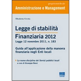 La legge di stabilità 2012 (Legge 12 novembre 2011, n. 183) - approvata con largo anticipo rispetto agli anni precedenti -trova la sua regolamentazione in una serie di provvedimenti che, a vario titolo, influenzeranno la gestione finanziaria ed operativa degli enti locali per il triennio 2011-2013. Il presente manuale intende offrire agli operatori di comuni, province e regioni una guida pratica per l'applicazione di tutte le disposizioni di interesse. In apertura, la mappa di tutte le novità permette un primo inquadramento delle norme intervenute e, grazie al rinvio alle pagine di commento, rende più rapida la consultazione del testo. Il ricco corredo di postille a margine contribuisce ad agevolare la lettura. Un ampio approfondimento sulla riforma dei servizi pubblici locali a rilevanza economica, completa il volume.