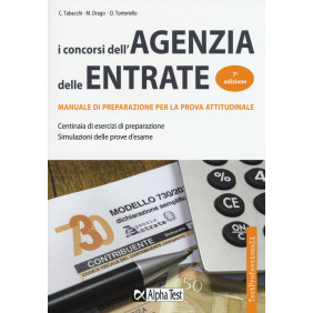 Dedicato ai concorsi all'Agenzia delle Entrate, il volume è mirato prevalentemente alla preparazione della prima prova oggettiva attitudinale. Il manuale propone parti teoriche e centinaia di esercizi commentati di ragionamento logico, matematico, numerico, verbale, figurale e comprensione verbale. Una parte del volume è anche dedicata agli esercizi di diritto, contabilità e statistica, oggetto di verifica della seconda prova scritta dei concorsi. Al fine di valutare la propria preparazione, il libro propone anche esercizi di verifica al termine di ogni capitolo e alcune simulazioni risolte delle prove ufficiali.