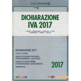 La collana dei Dichiarativi del «Sistema Frizzerà 24» si presenta con un aspetto grafico pratico ed operativo al fine di creare un vero e proprio percorso «guidato» per la compilazione della dichiarazione. Il commento quadro per quadro della dichiarazione Iva 2017 e l'illustrazione di tutte le novità sono arricchiti dalla presenza di numerosi casi pratici sulle problematiche di maggior interesse. Tra le novità della dichiarazione Iva 2017 si segnalano quelle relative a reverse charge, dichiarazioni d'intento, nuovi termini di presentazione e rimborsi Iva.