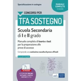 La nuova edizione del "Manuale per l'accesso al corso di specializzazione in sostegno didattico per la scuola secondaria" giunto ormai alla settima edizione, nasce da una profonda revisione ed una accuratissima analisi di tutte le prove ufficiali somministrate ai candidati dai diversi Atenei dal 2013 ad oggi, tenendo conto delle molte innovazioni legislative e didattiche intercorse nel tempo. Una disamina di oltre 15 mila quesiti ufficiali ha condotto ad un meticoloso lavoro di aggiornamento ai più recenti contributi pedagogici e didattici e alla realizzazione di una versione completamente focalizzata sul superamento del test di ammissione. Il manuale è completamente tarato sul programma d'esame e sulle conoscenze realmente richieste per l'accesso al TFA, tralasciando ciò che compete ad un docente già specializzato. Il volume si articola in sei parti: la prima parte dedicata alle competenze socio-psico pedagogiche e didattiche diversificate in funzione del grado di scuola, illustra i meccanismi alla base dello sviluppo sociale e le relazioni di gruppo, gli aspetti salienti della comunicazione, con particolare riferimento alle fasi adolescenziali, per poi passare ai fondamenti di base della psicologia dello sviluppo cognitivo e ai principali contributi pedagogici in tema di sviluppo e apprendimento. La seconda parte riguarda le competenze su empatia e intelligenza emotiva, riferite al riconoscimento e alla comprensione di emozioni e alla capacità di autoanalisi delle proprie dimensioni emotive nella relazione educativa e didattica. La terza parte è dedicata alle competenze su creatività e pensiero divergente, riferite cioè al saper generare strategie innovative ed originali tanto in ambito verbale linguistico e logico matematico quanto attraverso i linguaggi visivo, motorio e non verbale. la quarta parte analizza le competenze organizzative in riferimento all'organizzazione e agli aspetti giuridici concernenti l'autonomia scolastica (il Piano Triennale dell'Offerta Formativa, l'autonomia didattica; le modalità di autoanalisi e le proposte di auto miglioramento di Istituto; gli Organi Collegiali). La quinta parte ripercorre sinteticamente la storia dell'inclusione scolastica e, con l'ausilio della legislazione in vigore e delle classificazioni internazionali, definisce i principali disturbi cui è rivolta la didattica speciale. Nella trattazione si tiene conto delle più recenti novità normative. la sesta parte comprende batterie di test per la verifica degli apprendimenti. I quiz, suddivisi per capitolo, sono tratti dalle prove ufficiali Il testo è completato da ulteriori materiali didattici e da un software di verifica delle competenze, accessibili online dalla propria area riservata.