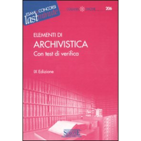 Gli "Elementi di Archivistica" si propongono come supporto allo studio nella preparazione a concorsi pubblici o a esami di livello universitario e post-universitario. I primi capitoli del volume prendono in esame la storia degli archivi, le peculiarità della documentazione archivistica, le diverse classificazioni degli istituti archivistici, considerando le mansioni degli archivisti e l'attività archivistica internazionale, anche in virtù delle nuove frontiere aperte da Internet. Di notevole interesse anche la trattazione della tecnologia archivistica, concernente sia le metodologie e gli istituti specialistici per la conservazione e il restauro dei beni archivistici, sia le norme e i criteri per lo svolgimento delle operazioni di fotoriproduzione e microfilmatura dei documenti, nonché la vera e propria archiveconomia, ovvero la specifica branca dell'Archivistica che si occupa della collocazione e della custodia delle carte, fornendo indicazioni sia sulla scelta e la cura degli edifici da adibire ad archivi, sia sui mezzi più idonei per preservare i documenti da insetti, roditori e agenti patogeni. Gli ultimi capitoli, riservati all'archivistica informatica, muovono dalla diffusione di ICT nella Pubblica Amministrazione per contestualizzarne il carattere innovativo anche nel comparto archivistico. Completano il volume quattro batterie di test di verifica per la verifica delle nozioni apprese e delle competenze effettivamente acquisite.