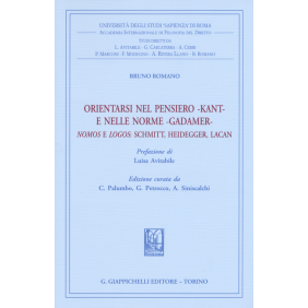 "Il lavoro di Kant 'Che cosa significa orientarsi nei pensiero?' (1786) costituisce il filo conduttore di questo studio di Bruno Romano. ... Nel proprium del fenomeno giuridico, viene colto l'incidere del linguaggio nell'opera del legislatore, del giudice, del giurista in generale, secondo itinerari che, con Gadamer, vengono illuminati dal momento specifico dell'applicazione, che segna la responsabilità nel legame tra l'astrattezza delle norme giuridiche e la concretezza del singolo caso. ... L'attenzione al principio di legalità e alla certezza del diritto fa emergere l'interrogativo sulle leggi ingiuste, sulla loro capacità di incidere in una comunità. ... Libertà di stampa, di parola, di culto, di pensiero sono alcuni contenuti inviolabili del principio di uguaglianza e costituiscono, come Romano ricorda con Calamandrei, «estrinsecazioni insopprimibili della personalità umana, che non si potrebbero menomare senza per questo sopprimere la libertà. Le leggi possono far tutto meno che sopprimere questi diritti intangibili ... possono far tutto meno che infrangere questi principi»." (dalla Prefazione di L. Avitabile)