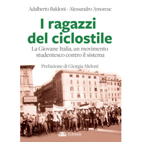 Cosa ha rappresentato la Giovane Italia? Baldoni e Amorese raccontano i due decenni del più importante movimento giovanile di studenti del secondo dopoguerra. Nata a Milano nel 1950, l'Asan Giovane Italia ha caratterizzato dentro e fuori le scuole italiane una presenza preponderante: sindacalismo studentesco, pubblicazioni e giornalini, attenzione alla cultura ed all'arte, ma soprattutto un movimento che, fin dal suo nome con quel richiamo mazziniano, ha fatto della difesa della Nazione la sua ragione di vita e la sua principale attività. Dalla questione orientale con la difesa di Trieste italiana a quella dell'Alto Adige, dall'egemonia delle proteste anticomuniste per l'invasione sovietica di Budapest e Praga, la Giovane Italia riporta i tricolori nelle piazze e nelle strade italiane, è l'incubo di presidi e questori, è per anni punto di riferimento per generazioni di ragazze e ragazzi alternativi all'incombente penetrazioni marxista nelle scuole. Spesso con pochi mezzi a disposizione, tra questi...il ciclostile, un formidabile strumento di comunicazione e di proselitismo.
