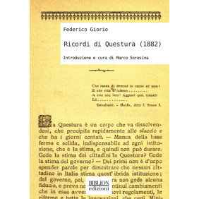 «È il popolo che odia la polizia! Sì l'odia, e con ragione»: così Federico Giorio, nel suo scritto "Ricordi di Questura", edito a Milano dalla Tipografia Artistica nel 1882 e ripubblicato a cura di Marco Soresina, sintetizza il sentimento di fondo che pervade tutto il pamphlet: la ferma denuncia contro l'immoralità della polizia, contro una serie di pratiche comuni nelle questure d'Italia tra anni Sessanta e Ottanta dell'Ottocento. Per farlo, l'autore si serve della narrazione di un cospicuo numero di "fatti" (alcuni veri, altri presunti e privi di validi indizi probatori), racconti di violenze e umiliazioni a cui venivano sottoposti gli arrestati, allo scopo di testimoniare l'uso arbitrario e discrezionale delle leggi da parte dei poliziotti e denunciarne l'ingiustizia, l'illegalità, la prepotenza e l'impunità. Il testo è preceduto da una riflessione storiconarrativa sulla variegata società cittadina tardo-ottocentesca e sulla sua evoluzione, ben rappresentata nella vivacità delle scene e dei quadri di vita dipinti nei "Ricordi di Questura". Il tono provocatorio e la prosa di Giorio, alternativamente moralistica, dissacrante, a tratti calata in un registro voyeuristico, sono indice del tentativo di suscitare la curiosità e fomentare un pubblico eterogeneo di lettori, di estrazione prevalentemente piccolo borghese, affascinato da vicende scabrose, crimini, scandali. Il risultato è un libro «sdrucciolevole per lo storico», che difficilmente si inscrive in una categoria univoca, sfiorando e, al contempo, discostandosi sia dalla memorialistica sia dal genere dei pamphlet politici.