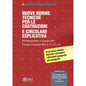 Le Norme Tecniche per le Costruzioni 2018 e la Circolare Esplicativa, in un unico volume che propone, per ogni paragrafo delle Norme, la relativa istruzione prevista dalla Circolare, secondo la seguente articolazione: 1. Oggetto della norma 2. Sicurezza e prestazioni attese 3. Azioni sulle costruzioni 4. Costruzioni civili e industriali 5. Ponti 6. Progettazione geotecnica 7. Progettazione in presenza di azioni sismiche 8. Costruzioni esistenti 9. Collaudo statico 10. Norme per le redazioni dei progetti esecutivi e delle relazioni di calcolo 11. Materiali e prodotti per uso strutturale 12. Riferimenti tecnici. La nuova Circolare esplicativa rende univoca l'interpretazione delle Norme, agevolandone l'uso e supportando i Progettisti nelle fasi di verifica, esecuzione e controllo del progetto.