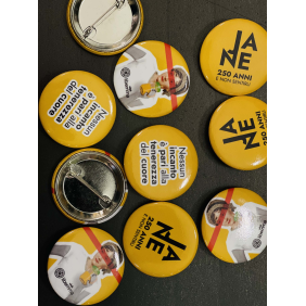 Spilla con diametro di 3,5 cm con 3 fantasie differenti.