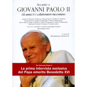 La prima intervista del Papa emerito Benedetto XVI in un libro a più voci che rende omaggio alla figura e al pensiero di Wojtyla. A un anno dalla rinuncia al suo Pontificato il Papa emerito Benedetto XVI ha rotto il suo silenzio. Lo ha fatto accettando l'intervista proposta dal vaticanista polacco Wlodzimierz Redzioch, dopo aver ricevuto le bozze del libro "Accanto a Giovanni Paolo II. Gli amici & i Collaboratori raccontano". Con i contributi di: Sua Santità Benedetto XVI - Amato - Bertone - Biocca - Buzzonetti - Deskur - Dziwisz Echevarría Grygiel - Kabongo - Mari - Mokrzycki - Mora Dìaz - Nagy - Navarro Valls - Normand - Oder - Póltawska - Ptasznik - Ruini - Sodano Svidercoschi. Il volume riunisce 22 contributi forniti da altrettanti amici e/o stretti collaboratori di Papa Wojtyla nell'occasione della sua canonizzazione fissata da Papa Francesco il prossimo 27 aprile. La vita, il pensiero, il programma e i sogni di Karol Wojtyla affiorano qui attraverso i ricordi partecipati e, spesso, commossi del vissuto quotidiano accanto al Pontefice. Il risultato è un ritratto a più mani, quanto mai vivo, variopinto e particolareggiato, assolutamente fedele e completo di Karol Wojtyla, l'uomo, il Papa, il Santo.