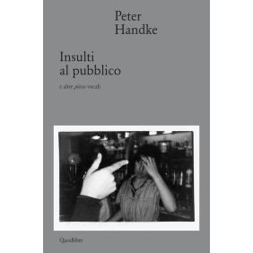 "Insulti al pubblico" è il testo più provocatorio dello scrittore austriaco Peter Handke. Il bersaglio sono le abitudini e il torpore intellettuale degli spettatori. Fu una provocazione maestosa e insieme sommessa, fatta con una scrittura che incanta ed è ad altissima tensione analitica. Il testo di Handke si serve «di forme naturali di espressione quali l'insulto, l'autodiffamazione, la confessione, l'affermazione, la domanda, la giustificazione, la scusa, la profezia, il grido d'aiuto». Handke lavora sapientemente con le ripetizioni, i ritmi cadenzati, il montaggio di frasi fatte, per esibire la standardizzazione e l'arbitrarietà del linguaggio, ma anche una vitalità che in esso resiste. Talvolta le voci si intrecciano in un brusio in cui si sente il risuonare di un inconscio linguistico e dei suoi condizionamenti. Il linguaggio di Handke lavora per «rendere l'apparato di percezione così preciso al punto che la natura in questa nostra società diventa riconoscibile come falsa, manipolata».