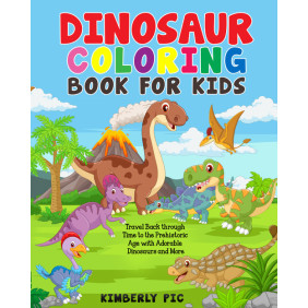 Dinosaur coloring book for kids. Travel back through time to the prehistoric age with adorable dinosaurs and more