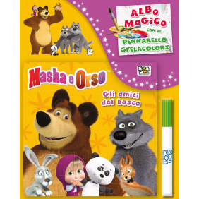 Due nuovi titoli ad arricchire la collana dedicata ai due personaggi più simpatici del momento. Masha ha tanti amici nel bosco, e ha deciso di giocare insieme a loro: c'è Scoiattolo, Coniglio, i Lupi dispettosi, Pinguino, Panda e ovviamente il caro e amatissimo Orso! Con gli amici del bosco è impossibile annoiarsi! Quando il pennarello passa sulle immagini, le scene si colorano da sole come per incanto! Il pennarello è atossico, sicuro e non macchia. Età di lettura: da 3 anni.