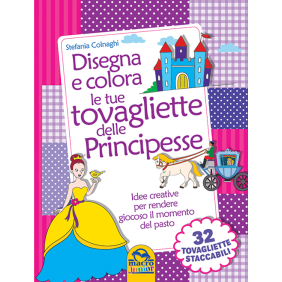 Bellissime principesse dai lunghi capelli, castelli incantati, principi eleganti, cavalli e buffi animali da compagnia, accompagnano i più piccoli nel mondo della fantasia, stimolando la loro creatività. Tante idee per disegnare, colorare e imparare a scrivere le prime lettere e i primi numeri. Stare a tavola diventa un'occasione per far divertire i bambini in modo costruttivo, sviluppando le loro capacità e stimolando la loro immaginazione. Le tovagliette si possono utilizzare non solo a casa, ma anche al ristorante, in vacanza, oltre che come originale idea regalo. 32 tovagliette staccabili da colorare. Età di lettura: da 5 anni.