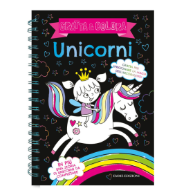 Gli appassionati di unicorni avranno di che divertirsi. Basta rimuovere la patina nera usando la matita di legno per scoprire un arcobaleno di colori e scatenare la fantasia sulle pagine bianche, tutte da colorare. Età di lettura: da 4 anni.