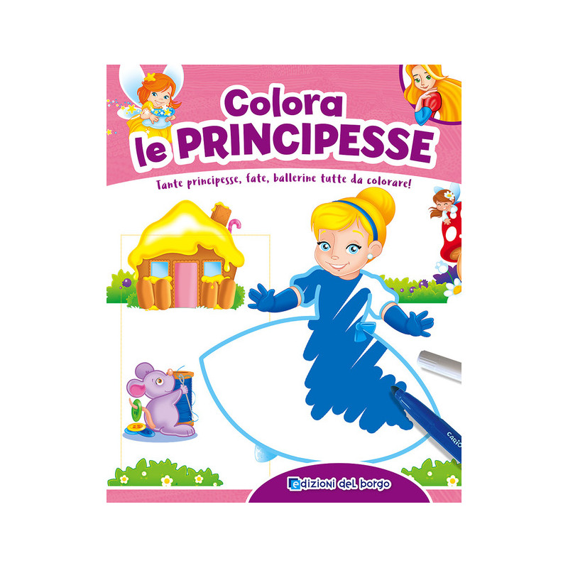 Tante bellissime principesse, fate, ballerine da colorare e una scatola con 6 pennarelli in allegato, per iniziare subito il divertimento! Età di lettura: da 3 anni.