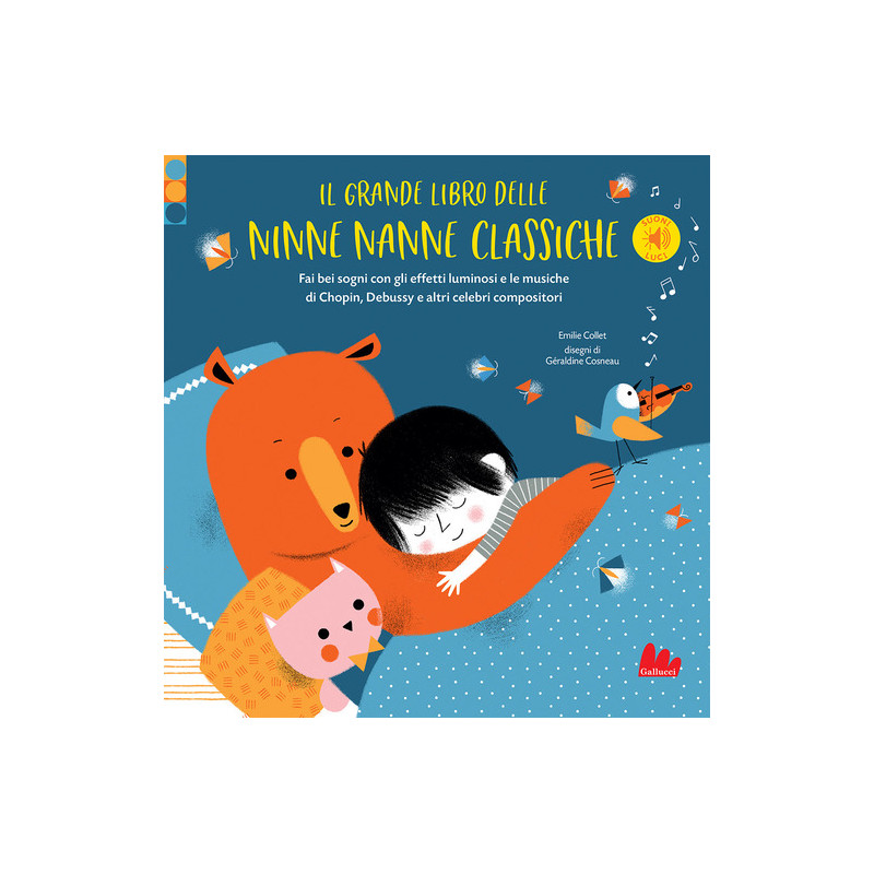 Buonanotte con la musica classica Le più belle arie notturne di Chopin, Debussy, Fauré, Offenbach, Flies e Satie sottolineate dal gioco a tempo delle luci in un libro unico con 6 ninne nanne classiche e 6 effetti luminosi! Età di lettura: da 1 anno.