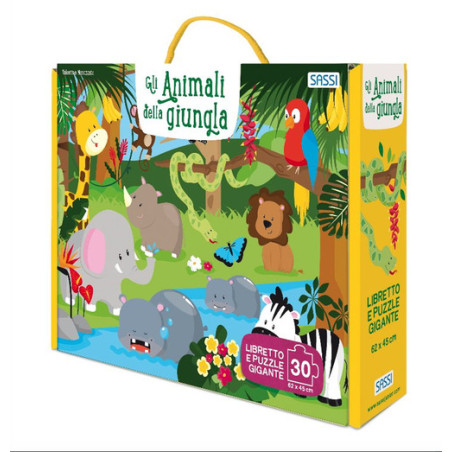 Scopri tutti i segreti della giungla e degli affascinanti animali che la abitano! Gli alberi sono enormi, le foreste impenetrabili, i colori vibranti. Siete pronti a intraprendere questa fantastica avventura nella natura selvaggia? Una valigetta contenente un maxi-puzzle da 30 pezzi e un grazioso libricino, che porteranno i bambini nel misterioso mondo della giungla. Età di lettura: da 3 anni.