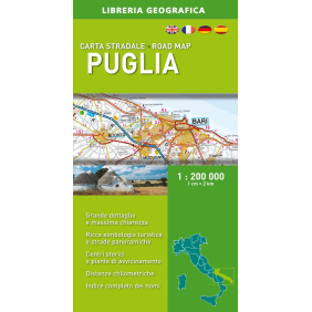 Fa parte della serie di mappe stradali di Libreria Geografica costantemente aggiornate alla scala di dettaglio 1: 200 000. Le carte regionali d'Italia si contraddistinguono per il dettaglio cartografico, la ricchezza dei nomi e la simbologia, con indicazioni di strade panoramiche, località turistiche e grandi percorsi escursionistici. L'utilizzo dei colori offre un'interpretazione immediata del territorio e la nuova cartografia diventa sempre più stradale e turistica. Carta antiriflesso con ottima opacità che garantisce il massimo dettaglio grafico, fornendo al contempo consistenza e resistenza alla mappa. Complete di libretto indice e piante delle principali città.