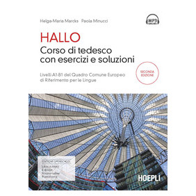 Hallo è un corso di tedesco comunicativo che offre un percorso didattico flessibile ed esauriente per le esigenze di apprendimento comprese tra il livello principiante e quello intermedio. Rivolto specificamente a studenti italiani, si presta sia all'apprendimento autonomo, sia come testo da utilizzare in classe, ed è adatto alla preparazione per le certificazioni Fit in Deutsch e Start in Deutsch 1 (A1) e 2 (A2) e Goethe-Zertifikat (B1). Il volume si articola in: Kursbuch in 12 capitoli, in cui si analizzano le principali strutture morfosintattiche, con spiegazioni grammaticali chiare e concise; Arbeitsbuch con numerosi esercizi di varie tipologie che consentono l'applicazione di quanto appreso; Mini-Test per l'autovalutazione, con scale di punteggi e giudizi corrispondenti; Wortschatz, in appendice, con un glossario dei termini usati nel volume e una lista dei principali verbi irregolari completi di paradigma; 2 CD-Audio con le registrazioni dei testi degli ascolti per consentire l'esercitazione integrata delle abilità di ascolto, lettura e scrittura. In fondo al volume sono incluse le soluzioni degli esercizi proposti e la trascrizione degli ascolti contenuti nei CD-Audio.