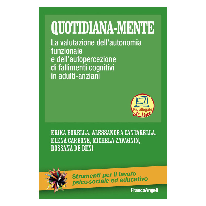 Quotidiana-mente ci confrontiamo con situazioni che richiedono l'abilità di risolvere problemi legati a vari domini funzionali (gestione del denaro, assunzione di medicinali ecc.), o viviamo momenti in cui la nostra mente viene distratta da pensieri non pertinenti, intrusivi. Ad oggi non vi sono però tecniche per indagare tali aspetti nell'arco di vita adulta. Con il presente volume si propongono due nuovi e originali strumenti di valutazione per l'adulto e l'anziano: il test "Abilità di risolvere Problemi della Quotidianità" (APQ) - adattamento italiano dell'Everyday Problems Test (EPT) - e il questionario "Mind wandering". L'APQ, che valuta la capacità della persona di risolvere efficacemente problemi pratici, viene presentato nella sua versione completa, ridotta (APQr) e parallela (APQp). Il secondo strumento, il questionario "Mind wandering", valuta la frequenza percepita di pensieri interferenti, o una certa propensione della mente a distrarsi e vagare. Questi strumenti, di facile somministrazione con carta e matita, sono particolarmente utili nella pratica clinica per la valutazione dell'adulto e dell'anziano, permettendo di individuare precocemente quelle difficoltà che possono minacciare le abilità quotidiane e l'autonomia della persona. Essi, inoltre, completano l'indagine diagnostica, sia attraverso l'esame oggettivo delle abilità funzionali che dei principali fallimenti attentivi autoriportati. I questionari di entrambi i test sono reperibili sul sito www.francoangeli.it/Area_multimediale.