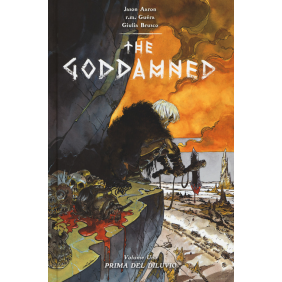 Sono passati 1600 anni dalla cacciata dall'Eden e la vita sulla Terra è andata completamente in malora. Il mondo degli uomini è un polveraio dove dominano la crudeltà insensata e la decadenza più estrema. Dove bestie preistoriche e predatori dell'Età della Pietra comandano incontrastati, senza alcun ostacolo alla loro sete di sangue. Dove l'omicidio è una regola di vita. Questa è la storia del mondo sull'orlo della prima Apocalisse. Solo un uomo può cambiare le cose... ed è maledetto da Dio e dagli uomini. Benvenuti nel mondo di The Goddamned. Contiene The Goddamned 1-5.