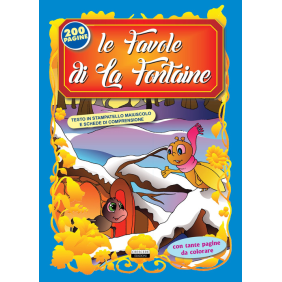 Raccolta delle più belle favole di La Fontaine con morale. Illustrate con testo in stampatello maiuscolo, diverse pagine da colorare e schede di comprensione. Età di lettura: da 6 anni.