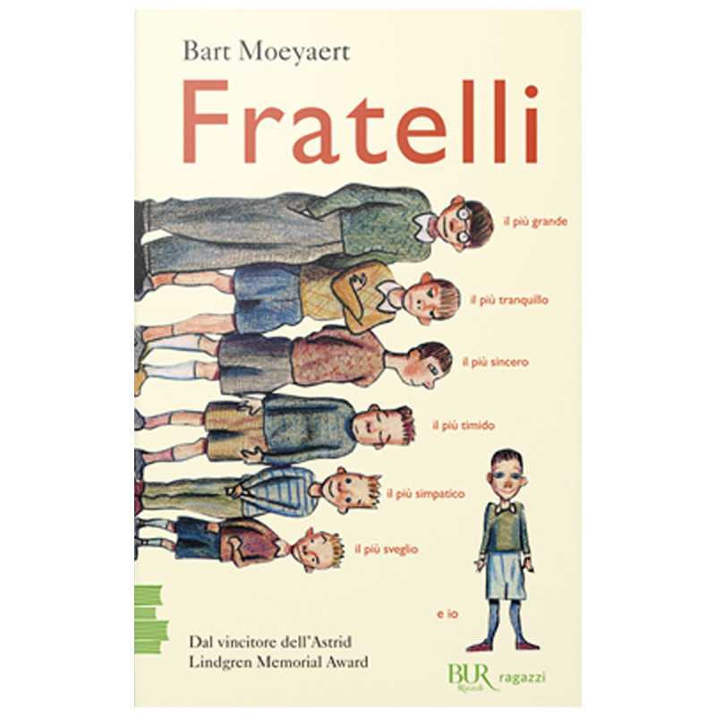 Non è facile essere il più piccolo. Tutti ne sanno più di te, ci sono sempre cose che "un giorno imparerai", e se c'è qualcuno da prendere in giro, nove volte su dieci sei tu. Se poi sei il più piccolo di sette fratelli... Ma non si moltiplicano solo i guai, perché visto da quattordici occhi il mondo non è più ciò che sembra: una pietra diventa il primo gradino della scala di un castello, molle e assi si trasformano in una macchina che sfreccia in camera da letto, la caldaia non è più una caldaia, ma una bestia con un occhio solo, rossissimo, che sputa fiamme nel buio della cantina. In quarantanove brevi racconti autobiografici Bart Moeyaert ricorda le disavventure della sua infanzia, passata in compagnia di sei fratelli maggiori, con uno sguardo che incanta, commuove e fa sorridere insieme. Moltiplicato per sette. Età di lettura: da 10 anni.