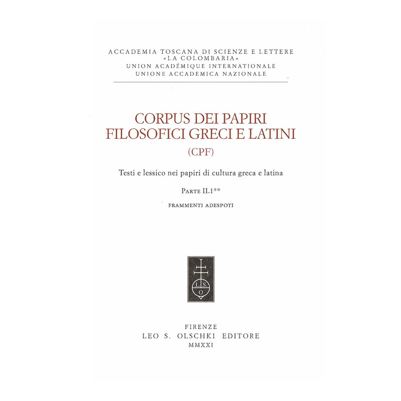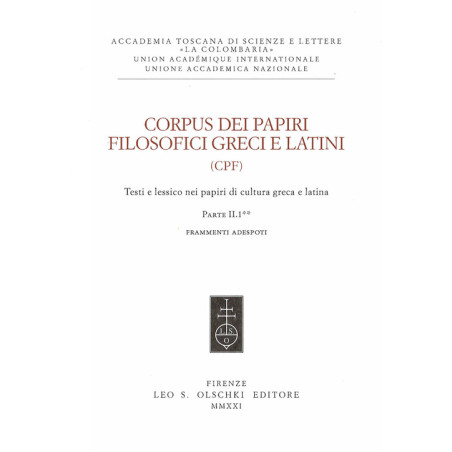 Giunge a compimento, con questo secondo tomo, una delle sezioni più interessanti del CPF, quella dei Frammenti adeposti inziata nel 2019. La distribuzione cronologica dei frammenti si estende dal sec. III a.C. al VI d.C. Sono rappresentate molte scuole filosofiche, dai Socratici agli Stoici e agli Epicurei, dai medioplatonici fino ai neoplatonici cristiani. Vengono offerte edizioni commentate di testi poco noti o oggetto di nuove interpretazioni, insieme alle loro riproduzioni fotografiche.