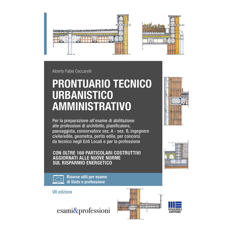 L'ottava edizione del Prontuario tecnico urbanistico amministrativo, pur conservando inalterate le caratteristiche di chiarezza ed esaustività necessarie a rispondere ai vari quesiti delle prove d'esame di Stato delle professioni tecniche, presenta numerose novità. Il volume tiene conto delle più recenti modifiche e novità normative su: Codice appalti, le modifiche "a tempo" introdotte dai successivi decreti correttivi e di semplificazione del nuovo Codice, oltre ad un capitolo specifico sui CAM (Criteri Ambientali Minimi) obbligatori; Testo unico edilizia, con alcune precisazioni legate alle innovazioni introdotte, oltre agli obblighi relativi alle costruzioni sismiche, rinnovati totalmente; Codice dei beni culturali e ambientali, con precisazioni e approfondimenti legati ai quesiti posti negli ultimi due anni; Norme Tecniche Costruzioni 2018, con le nuove metodologie di calcolo, con la revisione e l'aggiornamento degli esempi presenti nell'edizione precedente; Ordini professionali, attività professionali specifiche e deontologia per architetti e ingegneri. Risulta arricchita anche la parte relativa alla tecnologia, con la nuova classificazione del sistema tecnologico, ai sensi della UNI 8290, unitamente a particolari costruttivi rispettosi delle norme di risparmio energetico, oltre allo specifico capitolo sull'edilizia sostenibile e la tecnologia a secco. Il testo vede anche la riproposizione di una sezione aggiornata sulla struttura organizzativa degli Enti Locali e sul diritto amministrativo, di particolare utilità all'esame come nei concorsi pubblici nell'area tecnica degli Enti Locali. Collegato al testo, sul sito web esamearchitetto.it, oltre a una sezione dedicata alle modalità d'esame e alle statistiche di promozione delle varie sedi aggiornate al 2018, sono presenti un sunto di storia dell'architettura e dell'urbanistica, con cenni sul restauro architettonico; spunti ed esempi di soluzione della prima e della seconda prova scritta. Alberto Fabio Ceccarelli Architetto, libero professionista, svolge attività professionale in Italia. Organizza e gestisce nella città di Milano corsi per la preparazione all'esame di Stato e corsi di formazione professionale con rilascio di CFP.