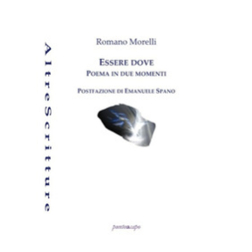 Essere dove di Romano Morelli è un libro in movimento. Lo è per stessa ammissione dell'autore che nella nota in calce, nel ragguagliarci sulla vicenda compositiva della raccolta, avverte di come la struttura sia mutata e da quella prima sezione, da quel poemetto chiuso, e per certi versi definitivo, sia fiorita la seconda parte che ne costituisce quasi la risoluzione, l'epilogo. Non è un caso che Morelli abbia adottato per definire i due momenti del suo poema, che resta tale nonostante la frattura che apparentemente lo percorre, il termine "movimenti", in conflitto, almeno su un piano meramente lessicale, con quel titolo che pare racchiudere una stasi, un'immobilità - confermata peraltro delle liriche della prima sezione - una paralisi, mentale e spirituale, ancor più che fisica, quasi incurabile. (Dalla Postfazione di Emanuele Spano)